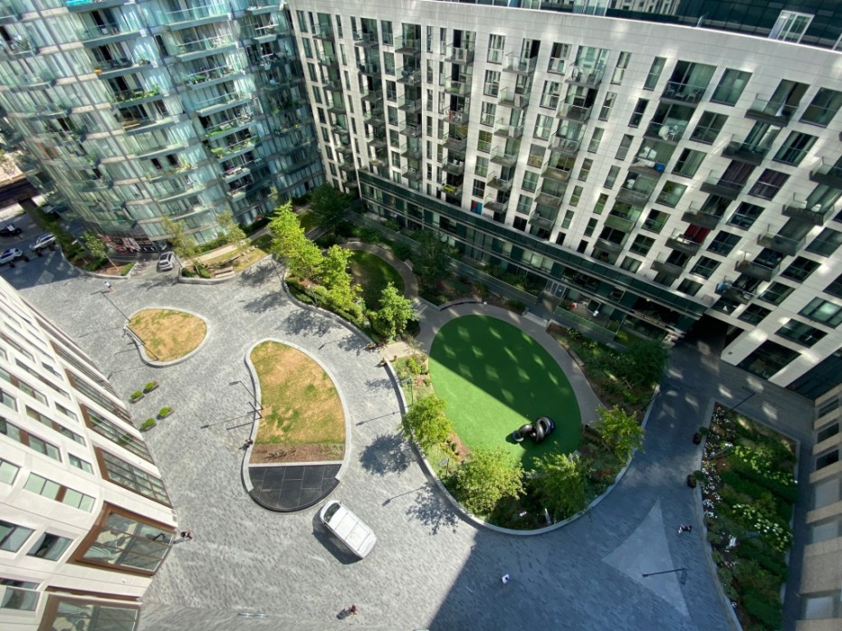 overlooking the communal gardens with an enomous balcony spanning the entire