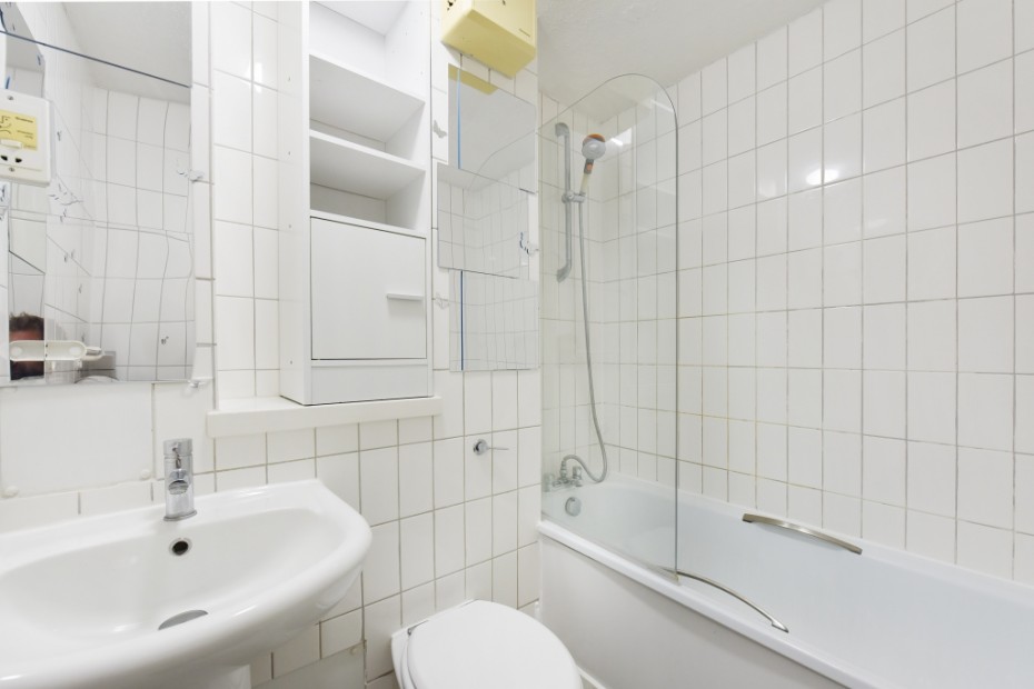 white three piece suite and mixer shower.